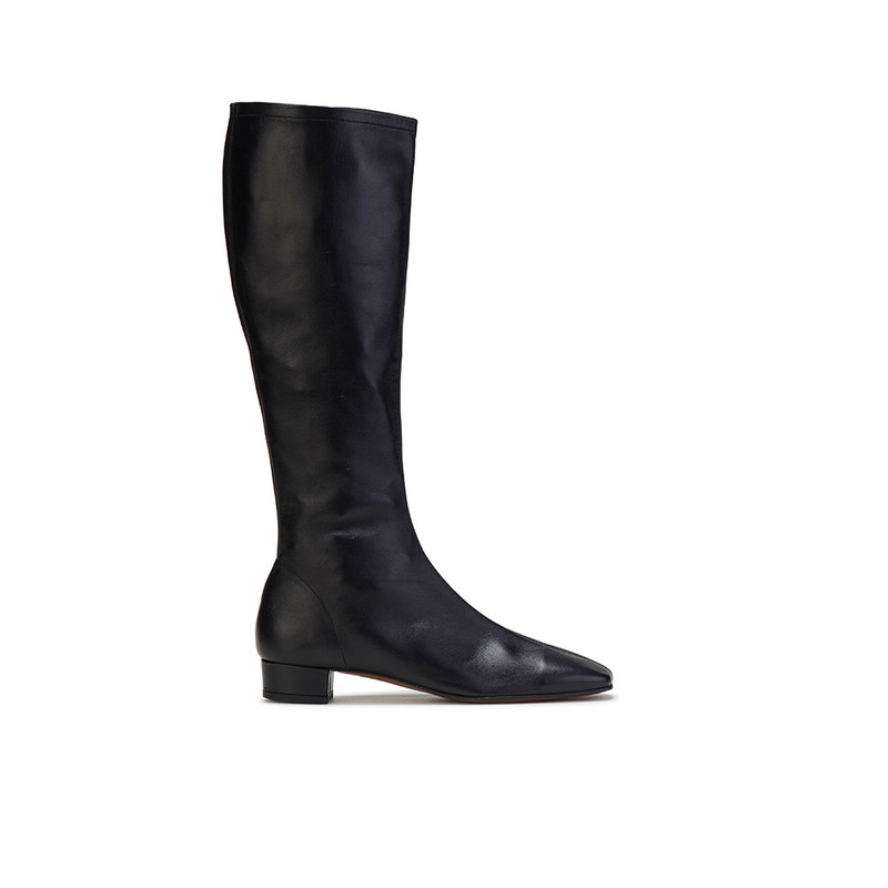 รองเท้าสี่เหลี่ยม สีแกะ สีดํา รองเท้าส้นสูงเข่า สไตล์ทันสมัยและแฟชั่น